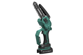 Мини пила работает от аккумулятора на 2 Ач. Она оснащена щеточным двигателем, который поддерживает высокую скорость резания — до 7,8 м/с. В сочетании с пильной шиной, изготовленной из кованной стали это способствует высокой производительности инструмента: 80 резов хвойного пиломатериала 100х50 мм.