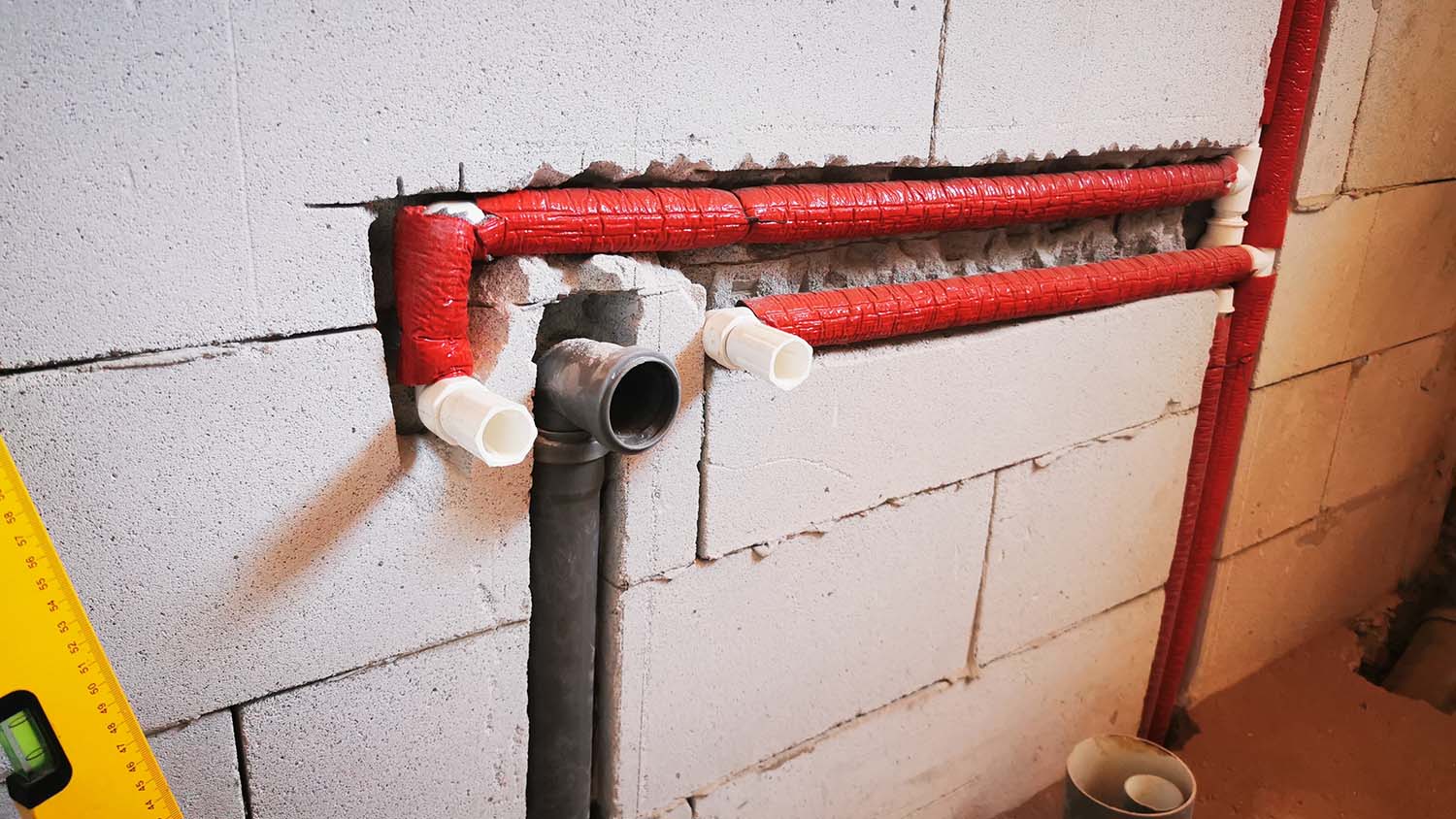 Открытое оформление часто применяется при тройниковой разводке — в ней мало труб и их можно развести по дому, не пряча в стены. Коллекторная разводка практически всегда скрытая — труб настолько много, что оставлять их открытыми в жилых помещениях неприемлемо. Монтаж водопроводной системы следует производить до внутренней отделки: трубы заглубляются в штробы с последующей заделкой или располагаются под обшивкой стен (гипсокартон, вагонка и т.п.).