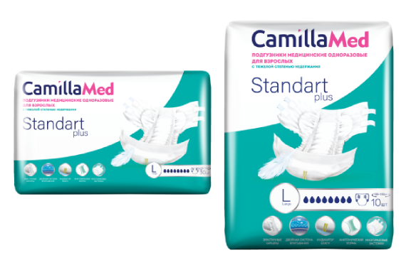 Мягкие и легкие подгузники CamillaMed подходят и женщинам, и мужчинам. Производитель предлагает четыре размера – S, M, L и XL – для людей с обхватом талии и бедер от 60 до 175 см.