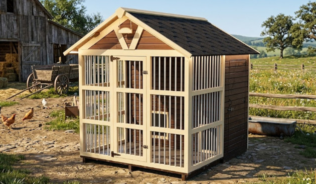 Утепленные пол и стены, встроенное окошко для подачи корма, прочная комбинированная конструкция. Возможность выбрать цвет окраски.