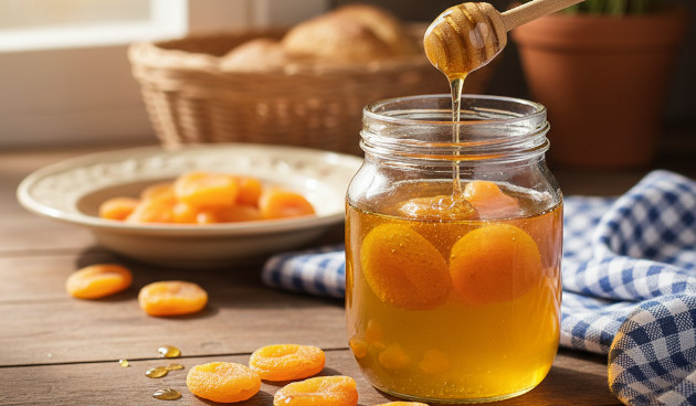 Промоем курагу, зальем кипятком на пару минут, потом высушим и пропустим через мясорубку. Зальем медом, перемешаем, разложим по банкам. Хранить нужно в холодильнике.