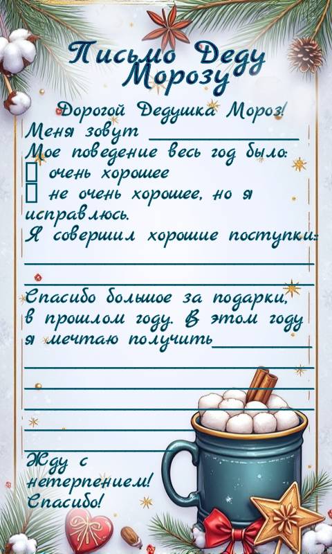 Образцы, шаблоны и готовые бланки для детских и шуточных писем от взрослых Деду Морозу