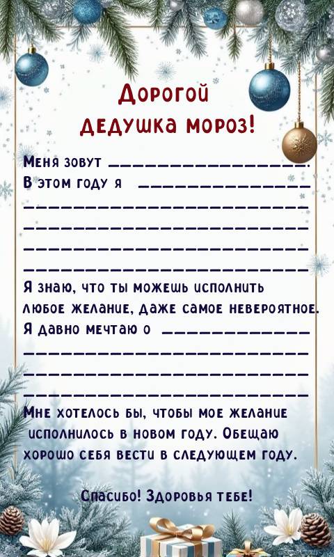 | Сколько подарков можно просить? | Выберите 2–3 главных желания и сформулируйте их просто и ясно. Можно объяснить, почему именно такие подарки важны. |