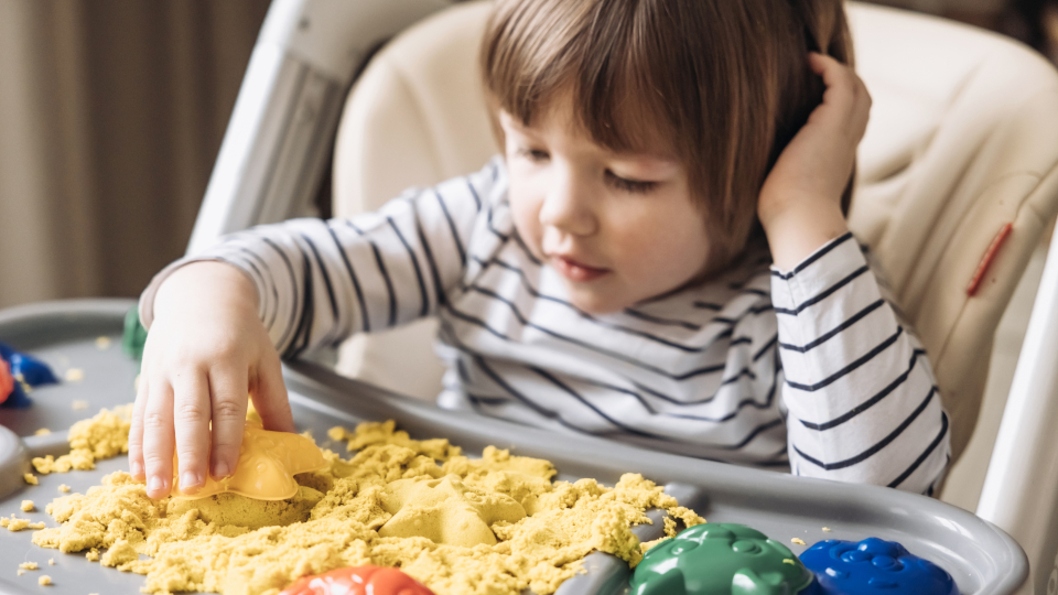 Занятия с кинетическим песком рекомендуется начинать после 3 лет. Можно, конечно, и раньше, но в таком случае точно не стоит оставлять малыша без присмотра. Это изделие приятное на ощупь, часто — красивого цвета и хорошо пахнет, поэтому карапузы так и норовят попробовать его на вкус.
