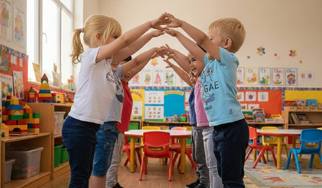 Детям предлагают послушать короткие фрагменты разных композиторов: Моцарта, Бетховена, Чайковского, Шостаковича, Дебюсси. После каждого фрагмента ребенок выбирает «роль»: если бы эта музыка была человеком — то каким? Смелым, тревожным, легким, строгим, мечтательным? Затем дети «разыгрывают» встречу этих персонажей без слов — только движением и мимикой. Игра развивает эмоциональный интеллект и учит понимать различия без оценок: не «плохой», а «другой».
