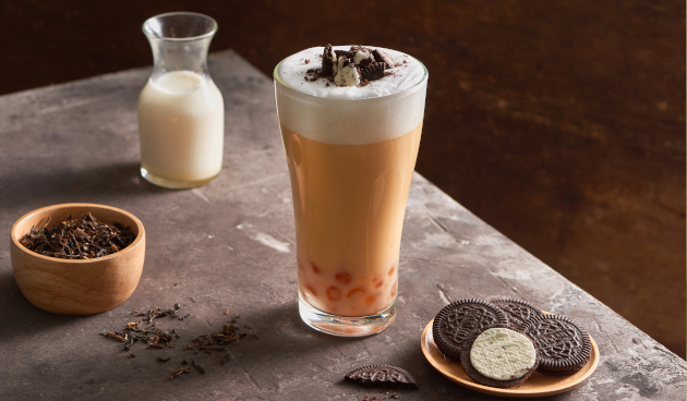 - На основе черного чая с молоком и тапиокой.