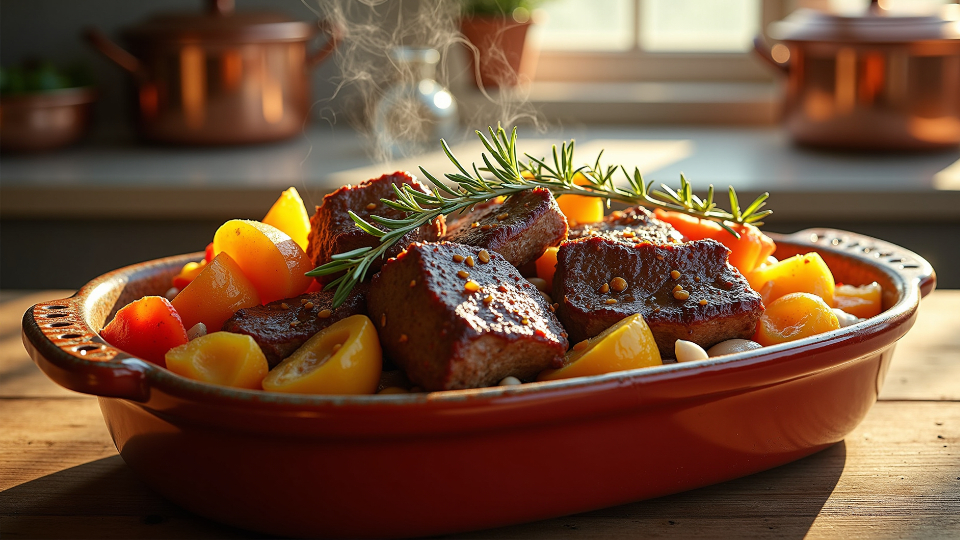Рагу из говядины с картофелем и болгарским перцем в мультиварке