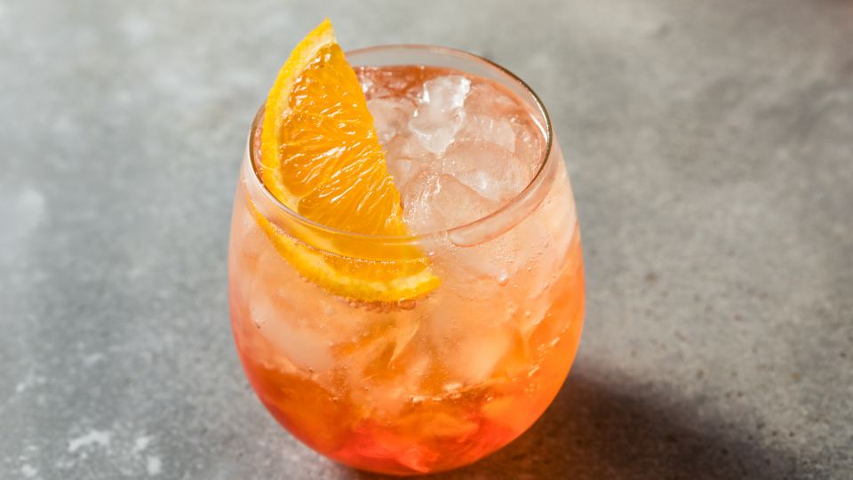 Это одна из вариаций классического коктейля Негрони. Здесь мы видим классическую структуру, в которой заменили кампари на апероль