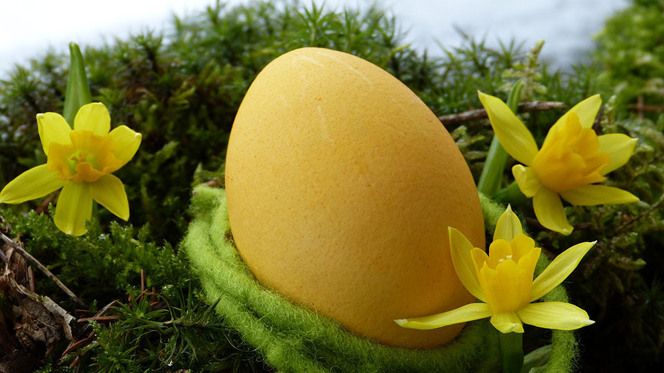 По легенде, когда христианская святая Мария Магдалина увидела воскресшего Христа, яйца в ее корзине внезапно окрасились в багровый цвет. С тех пор каждый год в качестве пасхального обычая принято красить вареные яйца в разные цвета. Желтые яйца у славянских народов олицетворяли плодородие земли и весеннее возрождение природы. Самым популярным и простым методом подготовить «солнечные» крашенки к пасхальному столу принято считать окрашивание куркумой.