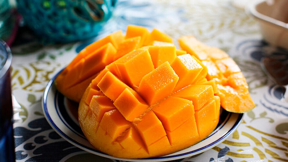 Этот плод чаще всего едят сырым. Зрелые манго сочные, нежные и сладкие. Существует много способов нарезать фрукт: половинками, дольками, кубиками. Последний вариант — самый простой и удобный. Его используют для красивой подачи на стол и для добавления манго в другие блюда. Поэтому остановимся именно на нем.