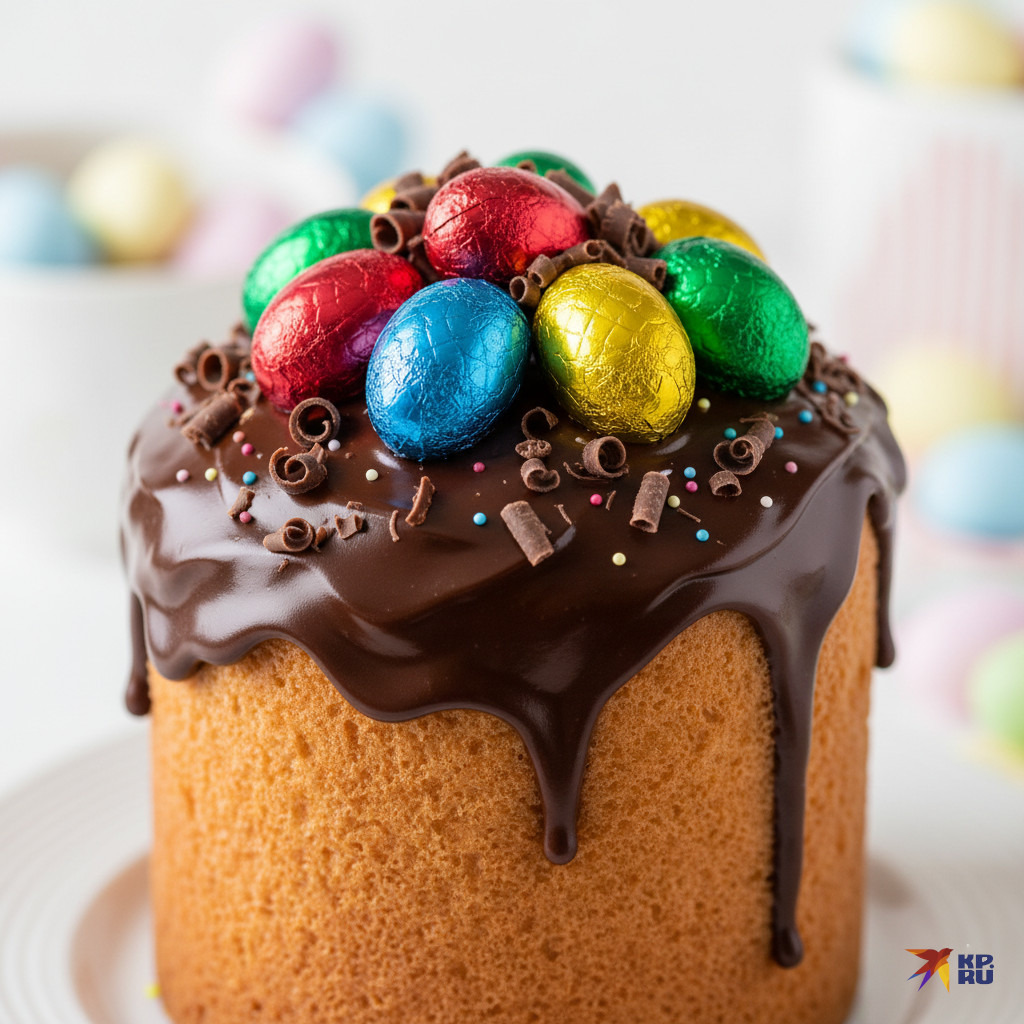 Один из трендовых способов украсить кулич — сделать большой бант из мастики или пластичного шоколада и расположить его в центре выпечки.