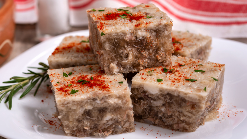 — Это блюдо любят многие люди, особенно в период праздников. Оно представляет собой мясо, залитое желе с добавлением различных специй. Самое важное в приготовлении — правильное соотношение мяса и желеобразного бульона. Стратегия «чем больше мяса, тем вкуснее» здесь не работает. Оптимально сделать примерно одинаковое количество желе и «начинки».