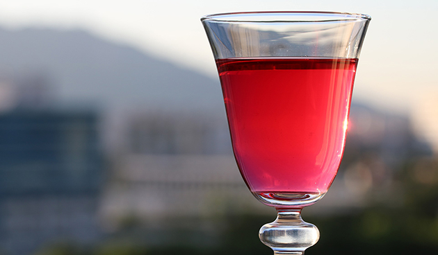Вскипятить воду, растворить в ней сахар. Имбирь очистить и нарезать пластинками. Добавить его и промытые ягоды в кипяток, выключить огонь. Процедить через сито и подавить ягоды пестиком, чтобы вышел сок. Жмых можно использовать в пирогах.