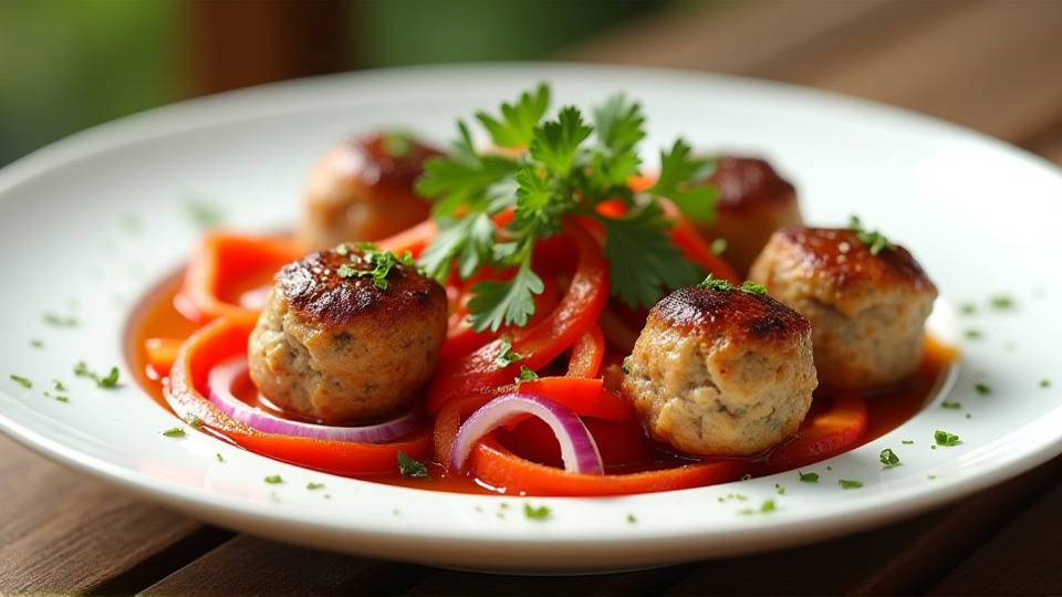 Шаг 5/5Подаем на столПерекладываем гарнир на тарелку. По краям выкладываем фрикадельки. Украшаем блюдо свежей зеленью и подаем.