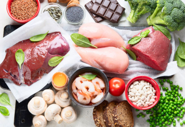 ● Продукты, содержащие железо и витамин B12: говядину, печень, гречку, шпинат, гранаты, яблоки, яйца, рыбу. Дефицит железа и витаминов группы B часто вызывает слабость и падение давления.