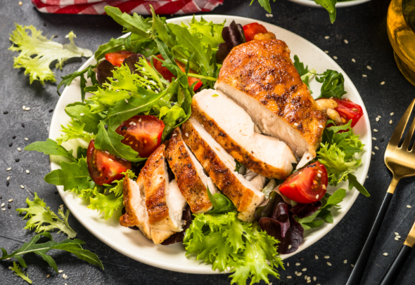 Последний прием пищи строится вокруг белка — это может быть рыба, птица или морепродукты в сочетании с листовыми овощами и небольшим количеством ферментированных продуктов.