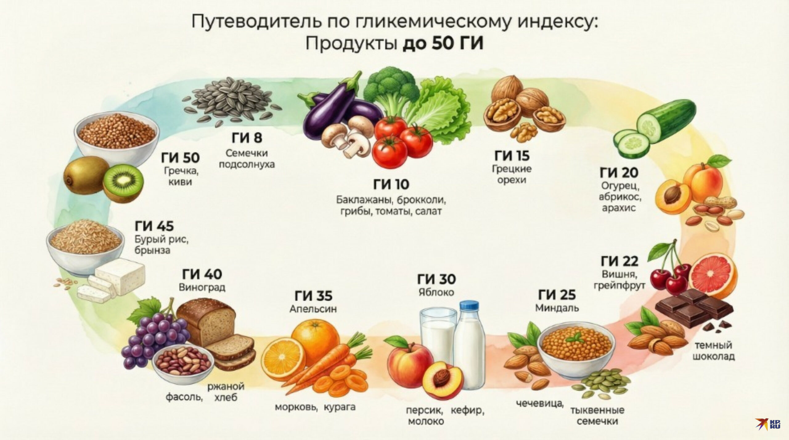 ● среди молочных и ферментированных продуктов с низким ГИ особенно ценны кефир и йогурт, а также квашеная капуста и кимчи, которые поддерживают здоровье микробиоты кишечника,