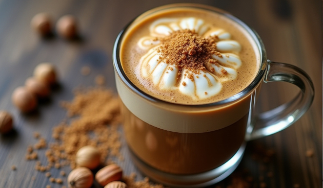 Сытный напиток с глубоким ореховым вкусом. Для его приготовления лучше всего подойдут пасты из миндаля, кешью или фундука — они гармонично сочетаются с кофейной основой