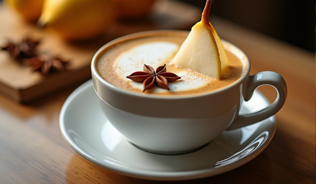 - Перелейте раф в предварительно подогретую чашку или бокал. При подаче можно украсить долькой свежей груши с щепоткой корицы.