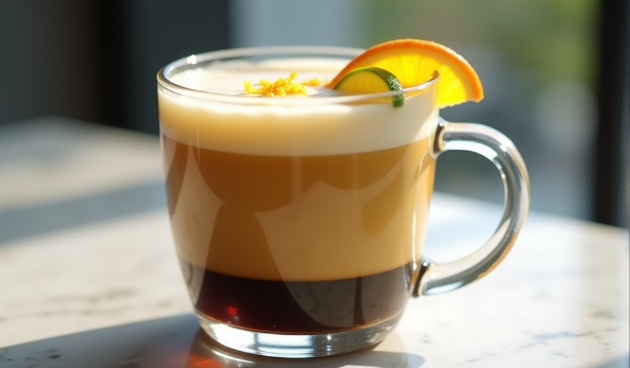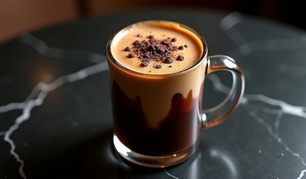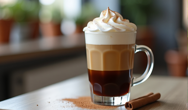 Это кофейный напиток, в котором все ингредиенты взбиваются вместе до однородной, воздушной консистенции. Внешне он напоминает капучино, но текстура у него более однородная, нежная и кремовая, без четкого разделения на кофе, молоко и пену. Секрет в том, что все компоненты взбиваются паром в питчере (сосуд для взбивания) кофемашины одновременно.