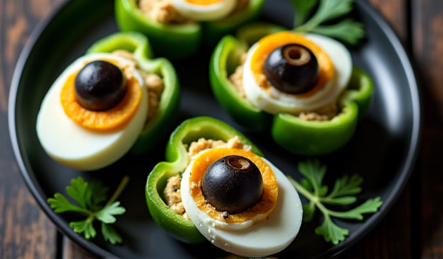 Сочетание сыра, чеснока, зелени и сочного перца создает гармоничный вкус. Оригинальная подача добавит закуске нужный антураж