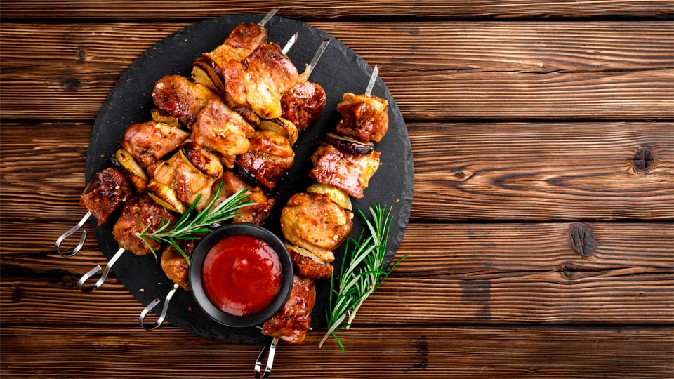 К шашлыку всегда подают соусы, которые подчеркивают его вкус. Классическую томатную заправку готовят из спелых помидоров в собственном соку с добавлением уксуса, соли, сахара и большого количества чеснока. Важную роль играют специи: молотый кориандр, копченая или острая паприка придают соусу насыщенность.