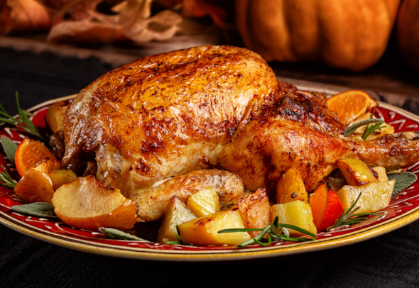 ● Курица, запеченная с ароматными специями и гарниром, всегда производит впечатление.