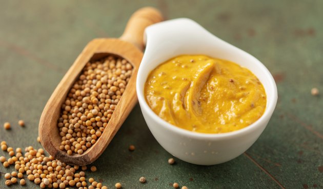 - К желткам добавьте горчицу, лимонный сок, сахар, соль. Перемешайте до однородной массы. Затем медленно влейте оливковое масло тонкой струйкой и взбейте миксером или блендером.