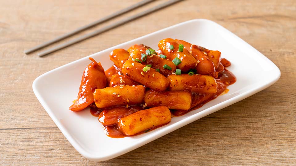 Это блюдо из рисовых клецок без начинки с соусом. Традиционно он состоит из острой перцовой пасты кочхуджан (кочуджан). Соус подчеркивает нежность риса и придает блюду характерный красный цвет. Степень остроты может быть разной — от более мягкой до очень сильной (1). Из-за этого блюдо становится универсальным и подходит любителям самых разных вкусов.