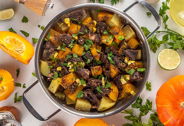 По данным Роспотребнадзора, в одной порции блюда из тыквы содержится множество минералов, витамины A и C, пиридоксин, фолат, тиамин, марганец, около 9 г клетчатки (3). Также в составе овоща есть витамин K, железо, кальций, магний, фосфор и другие полезные нутриенты. При этом плод содержит небольшое количество калорий, поэтому его можно использовать в пищу даже при похудении. В том числе это актуально для пациентов с СД 2 типа.