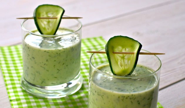 Удалить крупные стебли у укропа, зелень взбить с кефиром и солью в блендере. Пить холодным.