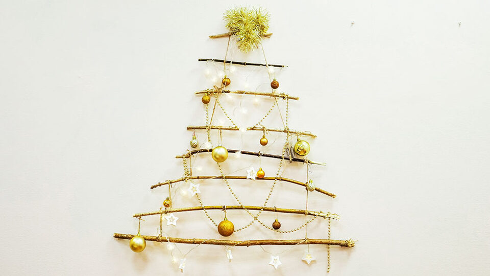 Настенная экоелка из веток
