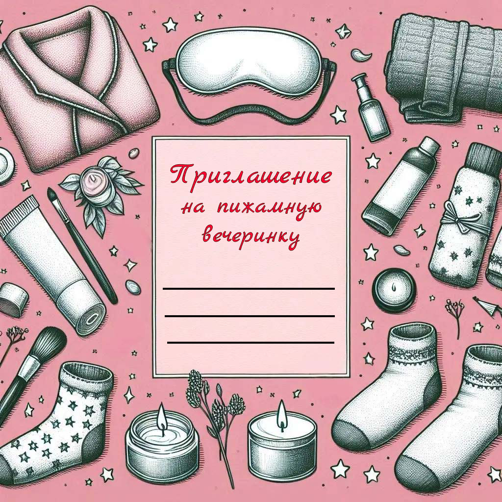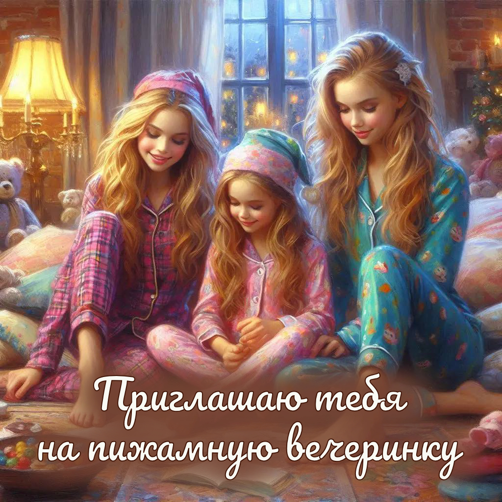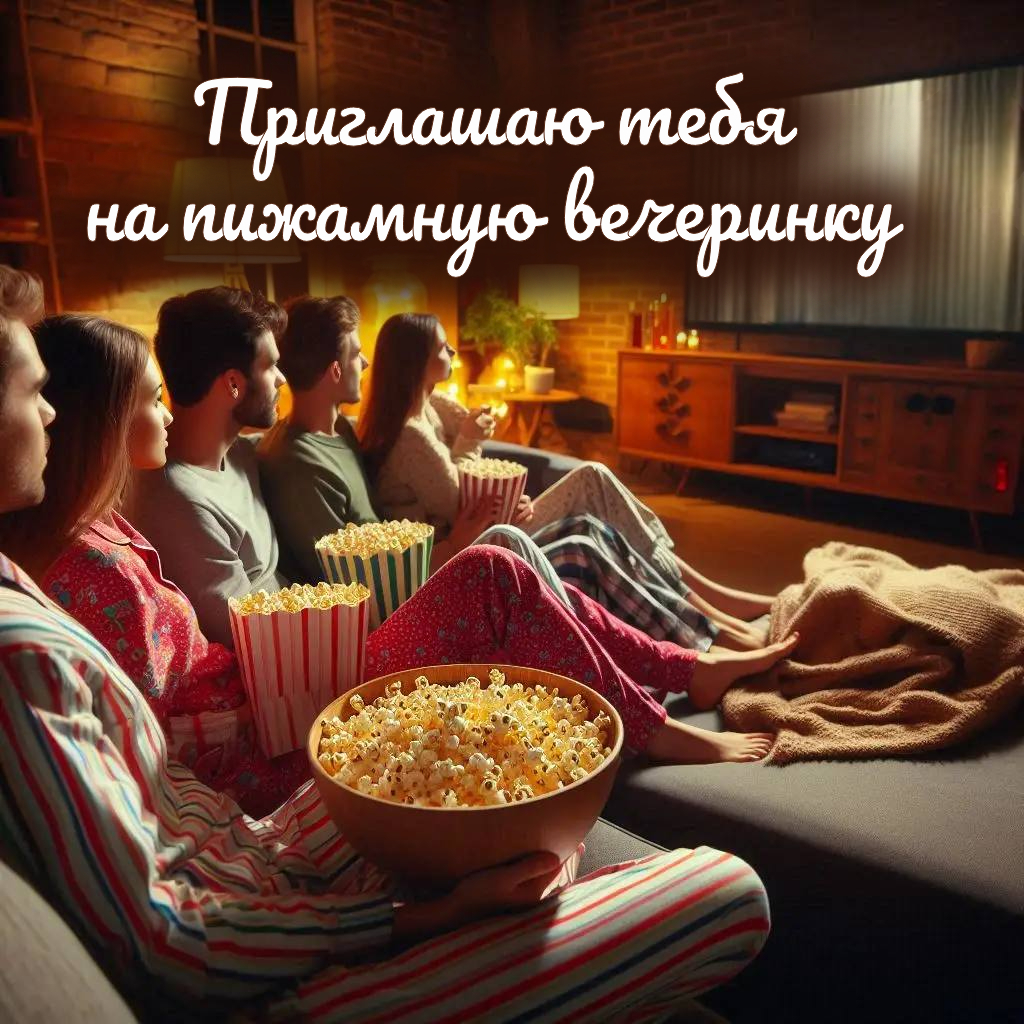 Дорогая подружка, приглашаю тебя на самую уютную вечеринку в году! Нас ждет волшебный вечер в пижамах с просмотром любимых фильмов, вкусными угощениями и девичьими секретами.