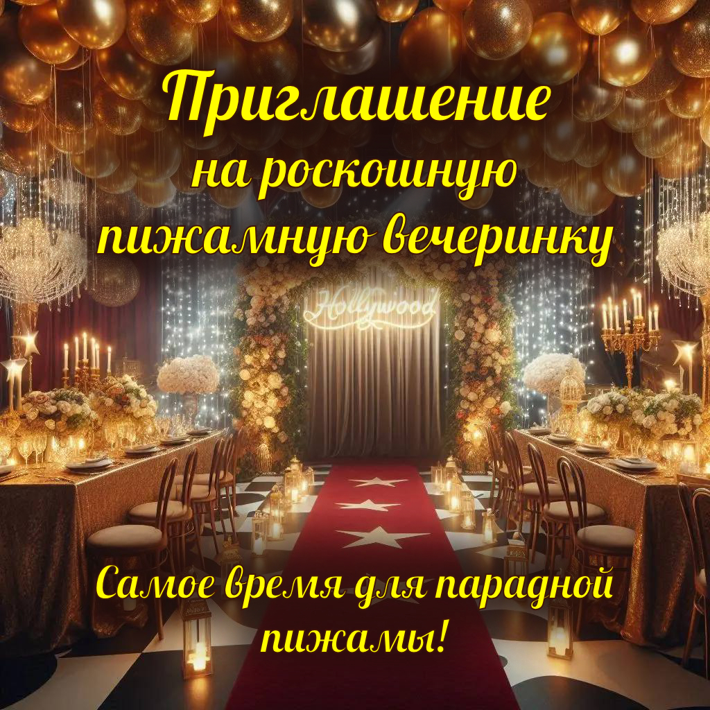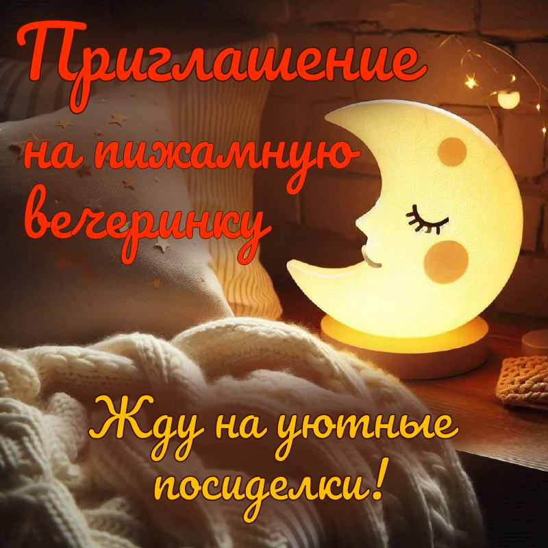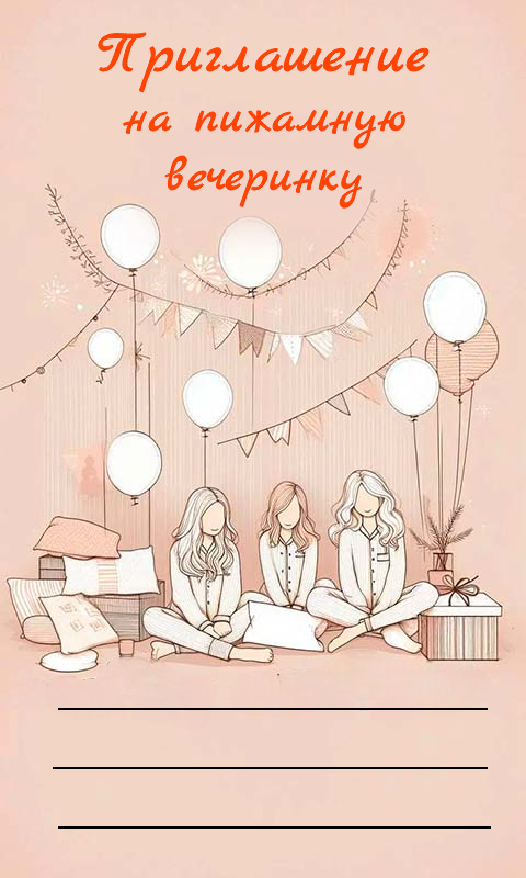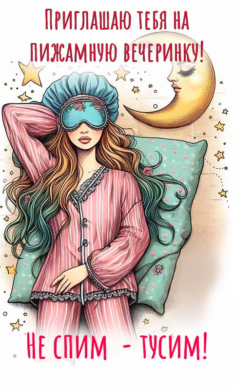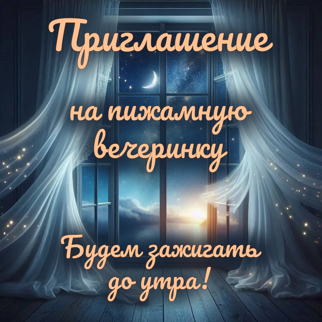 Дорогая подружка, приглашаю тебя на самую уютную вечеринку в году! Нас ждет волшебный вечер в пижамах с просмотром любимых фильмов, вкусными угощениями и девичьими секретами.