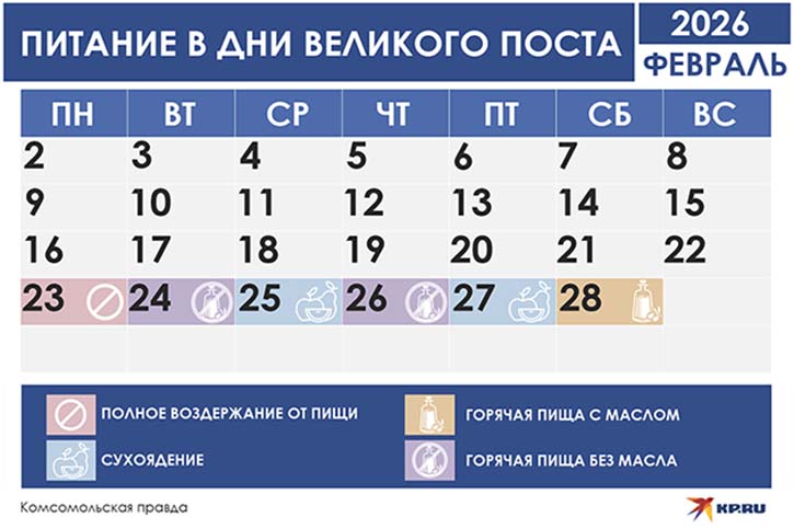 | Как правильно поститься | Монахи едят 1 раз в будни и 2 раза в субботу и воскресенье. Миряне — 3-4 раза в день. Серьезные ограничения не касаются тех, кто много работает, беременных и кормящих, детей, пожилых и тяжелобольных. |