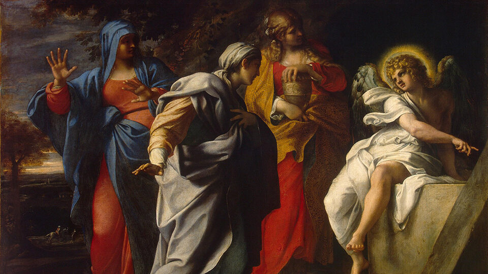 Находящийся там Ангел обратился к женщинам: «Что ищете живого среди мертвых? Он воскрес, как и обещал».