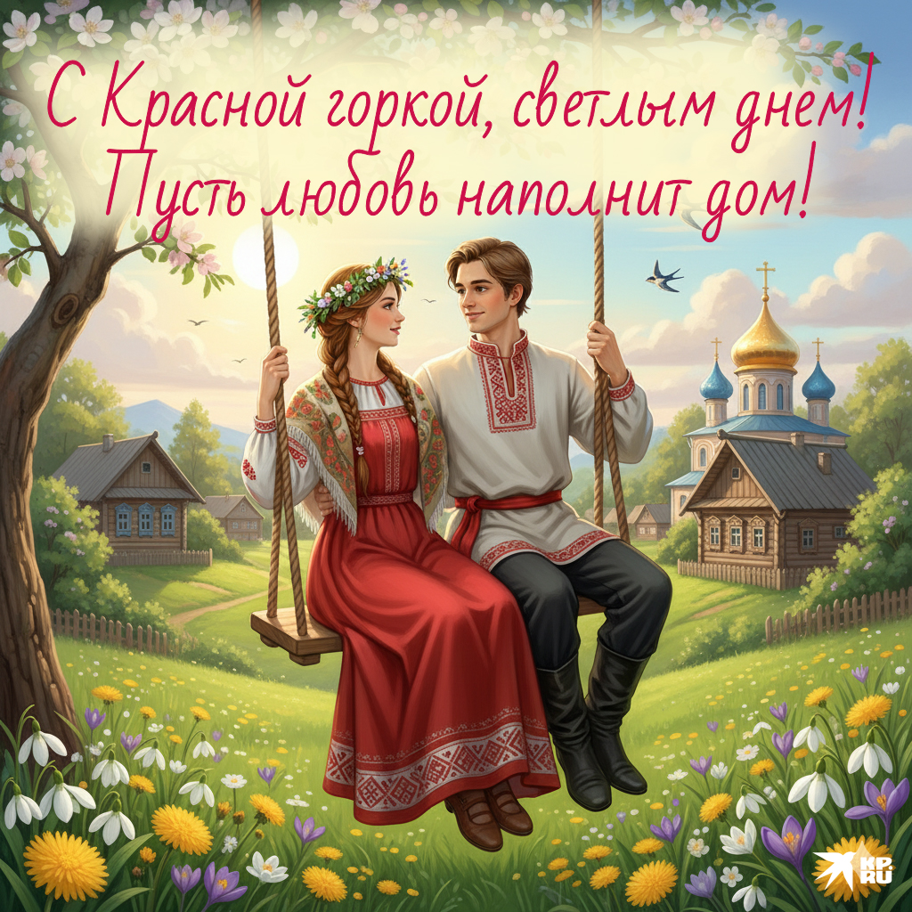Красивые открытки «С Красной горкой» с поздравлениями женщине и мужчине