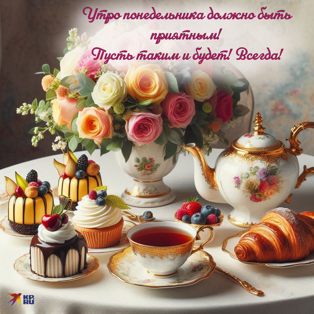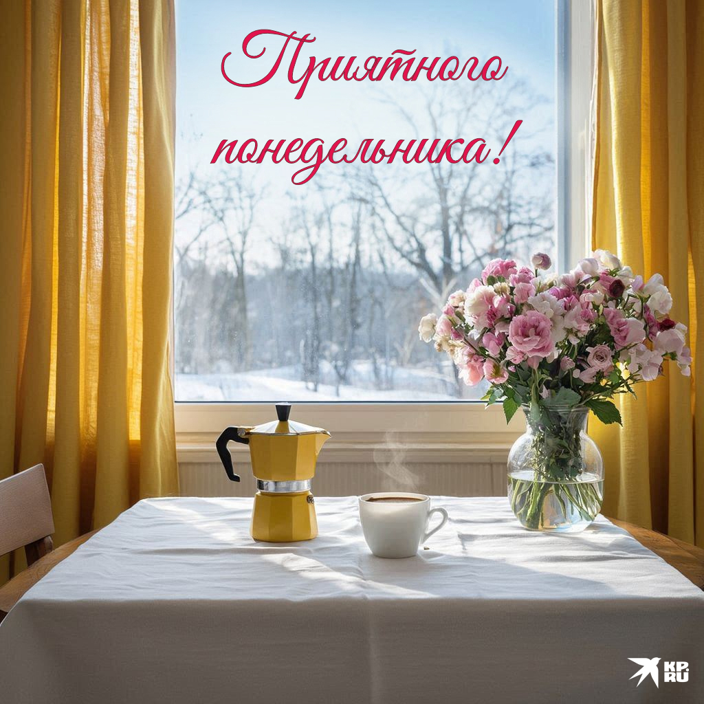 - Доброе утро понедельника! Пусть этот день станет холстом, на котором вы напишете яркими красками свои новые достижения. Закройте глаза и представьте все хорошее, что может произойти сегодня — и поверьте, так оно и будет!