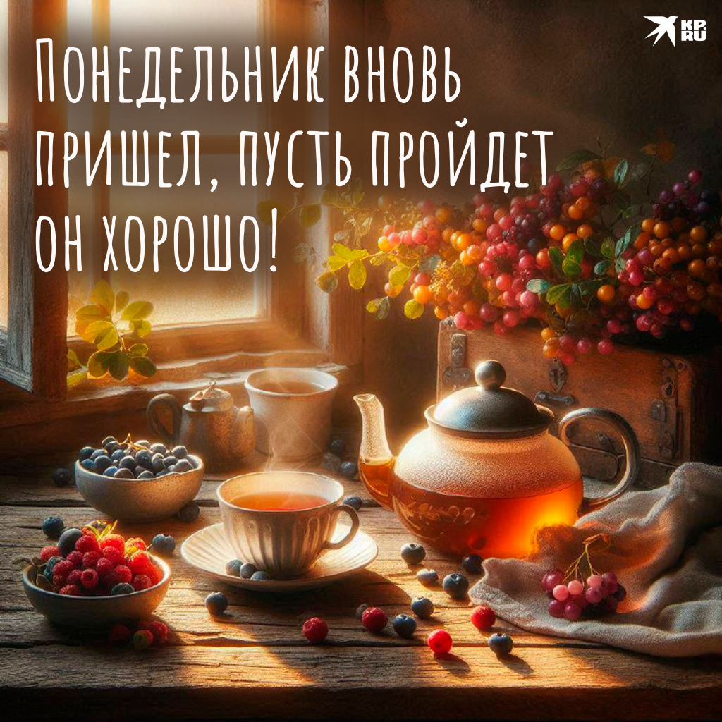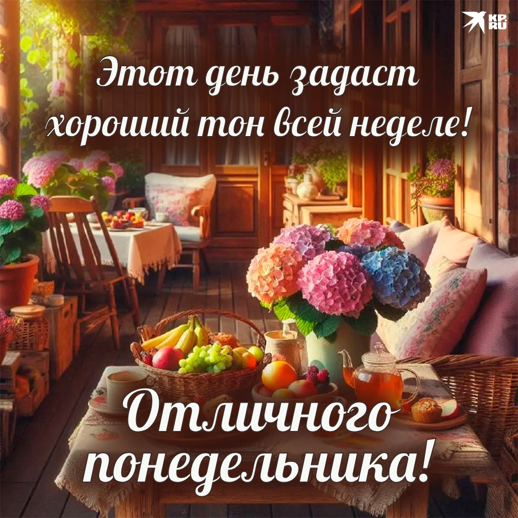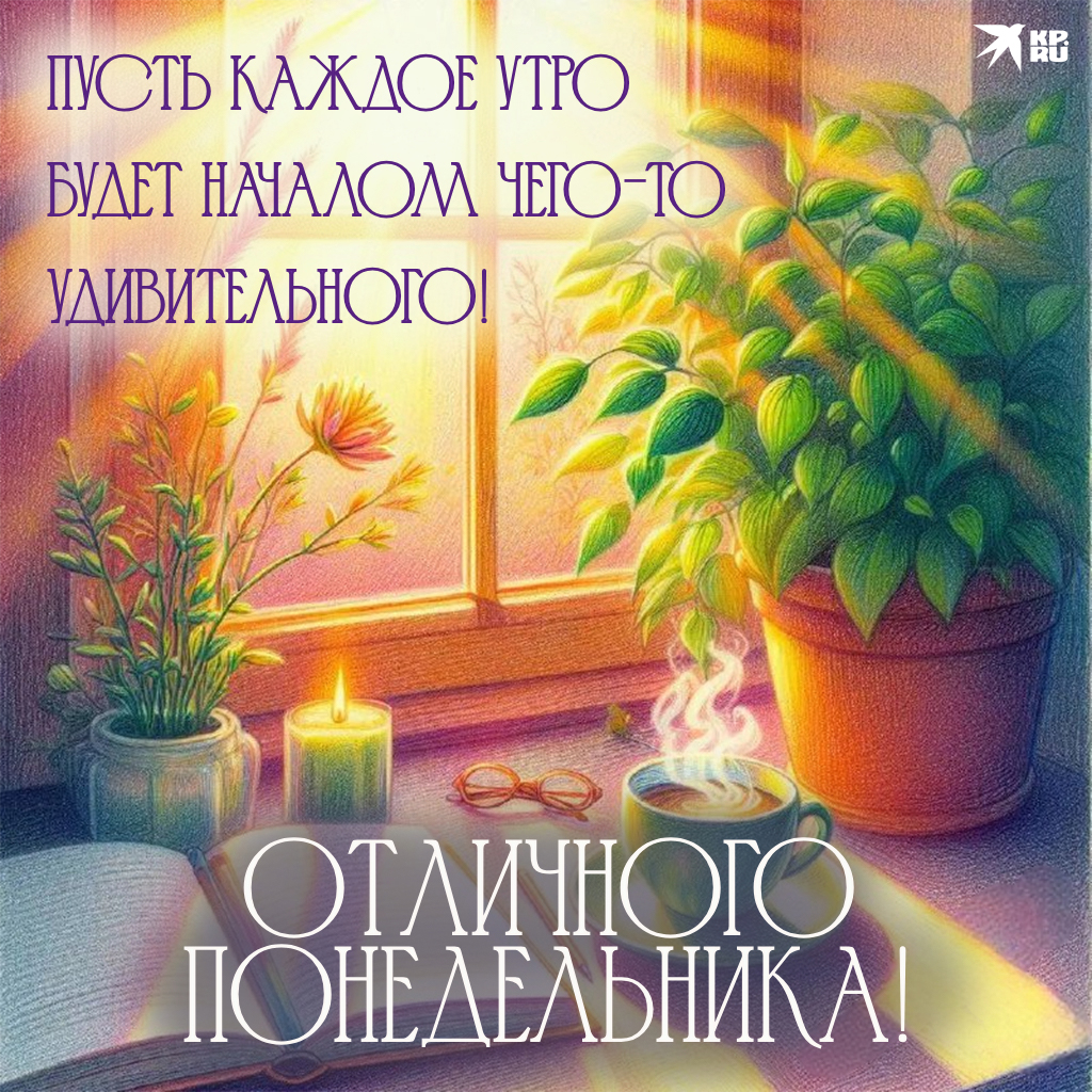 - Доброе утро понедельника! Пусть этот день станет холстом, на котором вы напишете яркими красками свои новые достижения. Закройте глаза и представьте все хорошее, что может произойти сегодня — и поверьте, так оно и будет!