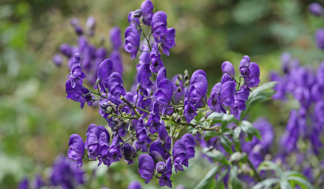 Аконит, или борец (Aconitum) – род растений семейства Лютиковые (Ranunculaceae). В нем насчитывается 330 видов (1). Это многолетние растения с прямостоячими стеблями высотой 50 – 150 см, рассеченными листьями, а под землей у них корневища или клубеньки. Цветки у них чаще всего синие или фиолетовые, реже белые или желтые, но всегда неправильной формы, чем-то напоминающей шлем. Сами по себе они довольно крупные, но, помимо этого, еще и собраны в эффектное соцветие-кисть (2).