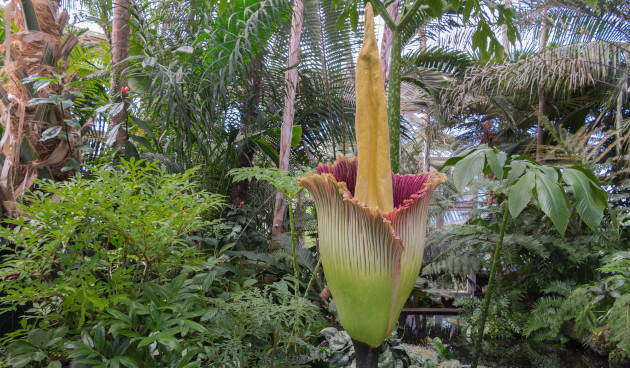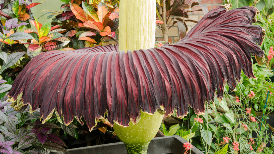 Аморфофаллус титанический (Amorphophallus titanum). Родина этого вида – тропические леса индонезийского острова Суматра, где его обнаружили 1878 году. Но сейчас его можно увидеть во многих ботанических садах мира.
