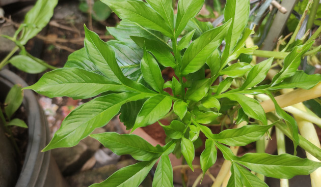 Нижнюю часть черенка, по факту ножку буквы Y, нужно припудрить стимулятором корнеобразования, например, можно использовать Корневин. А затем посадить во влажную очень рыхлую почву, заглубив, немного не доходя до листовых пластинок.