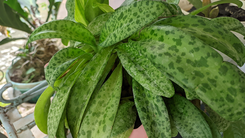 – Дримиопсис – очень интересное растение, – считает агроном Светлана Михайлова. – В первую очередь оно привлекает своими пятнистыми листьями, а экзотичность образа ему добавляют луковицы, которые возвышаются над землей. Цветки у него невзрачные, но они собраны в голос и в целом соцветие выглядит очень мило.