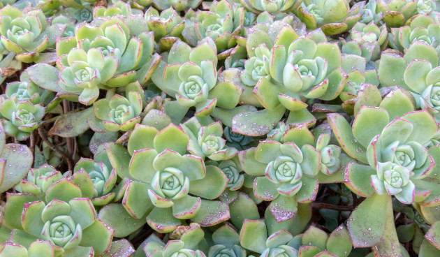 Этот вид – любимец поклонников суккулентов. Почти у самой земли образует плоскую розетку листьев диаметром до 30 см, напоминающую тарелку. Плотно прилегающие друг к другу листовые пластинки образуют красивый геометрический узор. Наружный край розетки загнут книзу.