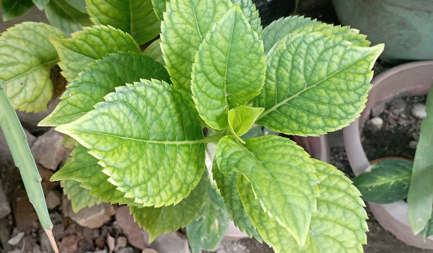 Бывает, что листья страдают из-за неправильно подобранного грунта. Гортензия любит кислую почву с большим количеством разрыхлителей.