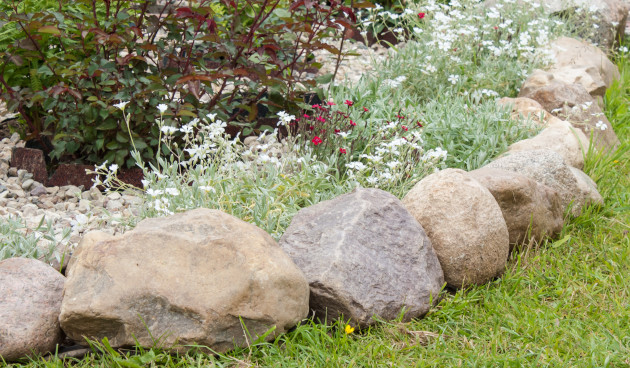 - Подберите для бордюра камни примерно одинакового размера.
