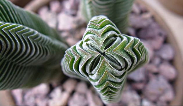 Крассула будда (Crassula Buddha‘s Temle). Мечта многих цветоводов. Это необычный вид крассулы – результат скрещивания крассулы перволиата и пирамидальной. Создал его в 1959 году американский селекционер Майрон Кимнах, удивительный садовник, не имевший специального образования (2).