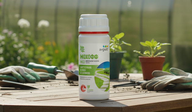 Довольно специфичный гербицид – он биологический, предназначен для уничтожения мхов и лишайников на мощеных садовых дорожках и отмостках в швах между плитками. А еще на газонах. Уничтожает только те части растений, на которые непосредственно попал раствор. При этом и трава тоже гибнет, поэтому на лужайках его следует применять точечно, а потом, на проплешины придется подсевать новую траву. Обработку этим гербицидом можно проводить в течение всего теплого времени года.