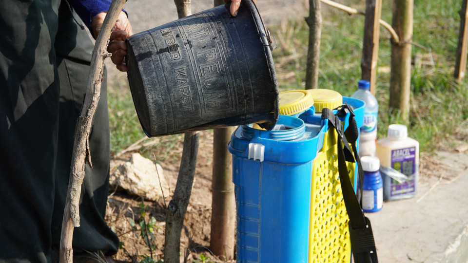 Классический вариант – развести рекомендованную дозу препарата сначала в небольшом количестве воды, примерно 1/3 от необходимого. Все тщательно перемешать – так гербицид лучше растворится или образует равномерную взвесь, а затем долить воды до необходимого объема. И еще раз все перемешать.