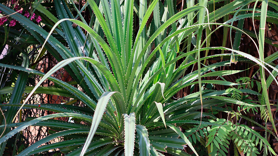 - панданус Вандермееши (Pandanus vandermeeschii) – листья ярко-зеленые, с сизым налетом и карминными зазубринами (2)